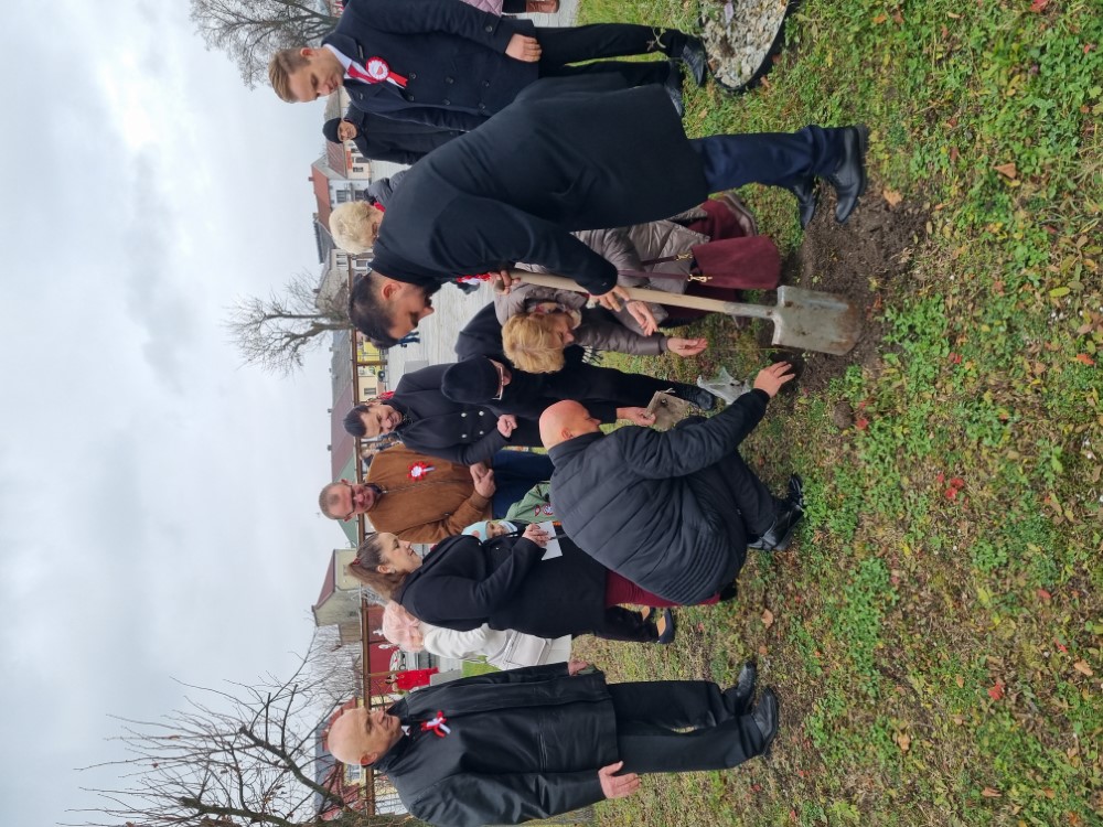 Posadzenie dwóch dębów na rakowskim rynku w ramach akcji „Tysiąc Dębów na Tysiąclecie Państwa Polskiego” było kulminacyjnym momentem uroczystości z okazji Odzyskania Niepodległości 11 listopada 2025 r.