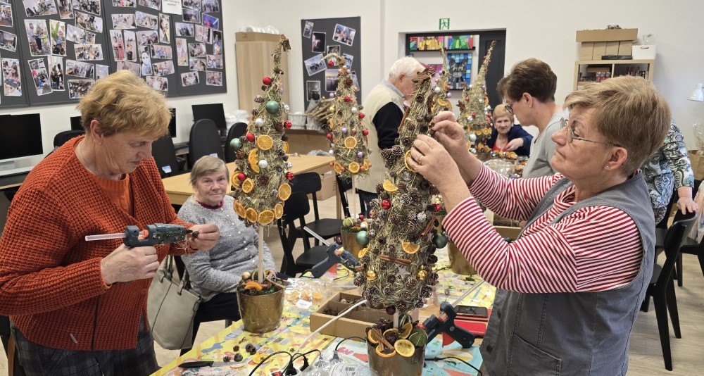Spotkanie stało się również okazją do wspomnień o dawnych zwyczajach świątecznych oraz wymiany pomysłów na dekoracje inspirowane folklorem regionu. Dzięki temu każdy wianek i każda kompozycja były niepowtarzalne, a ich tworzenie stało się prawdziwą przyjemnością.