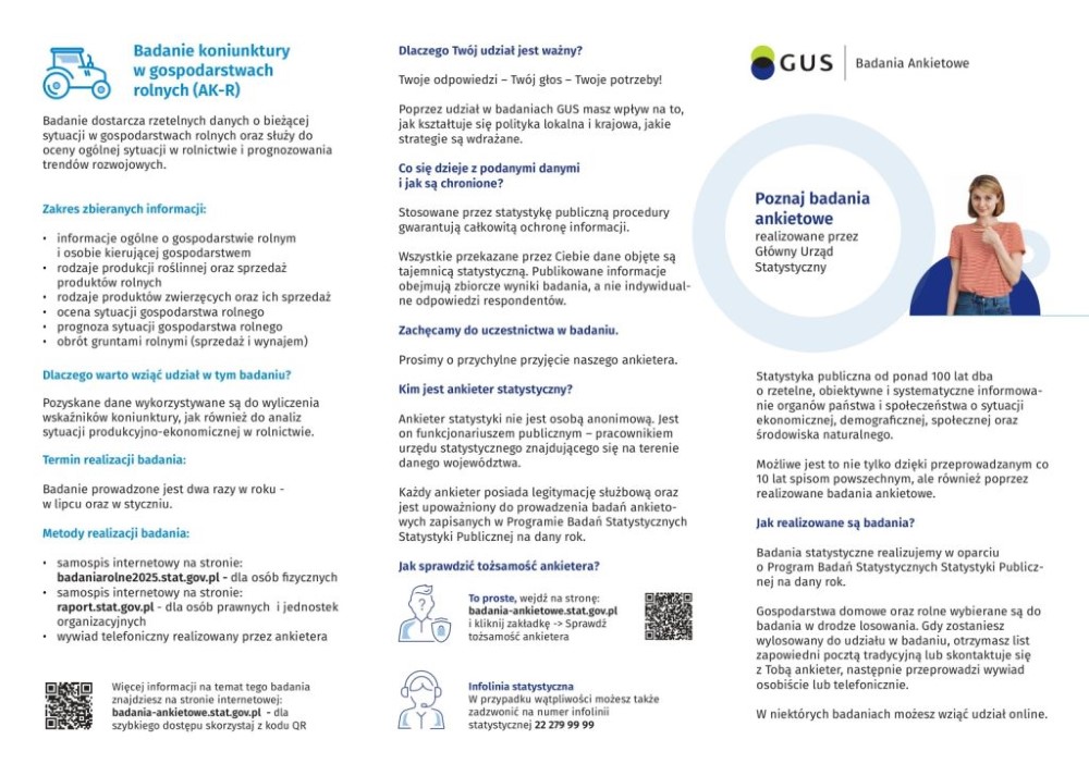 Od 12 do 30 stycznia 2026 r. na terenie całej Polski zostanie przeprowadzone badanie statystyczne dotyczące koniunktury w gospodarstwach rolnych (AK-R).