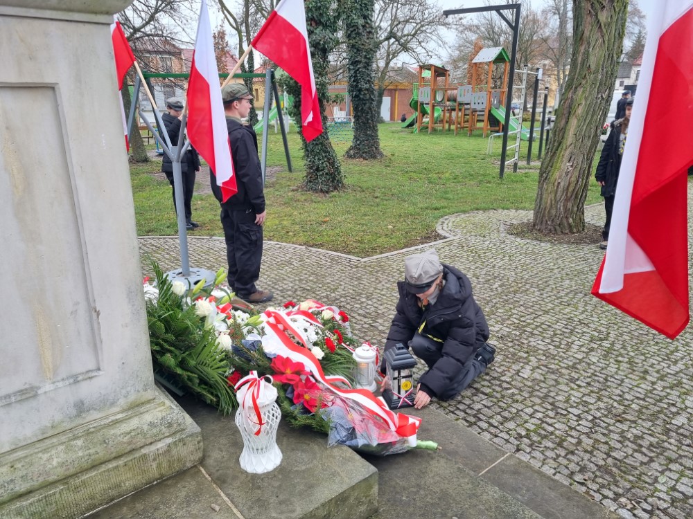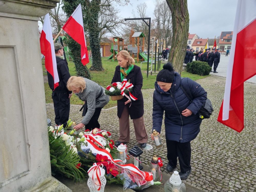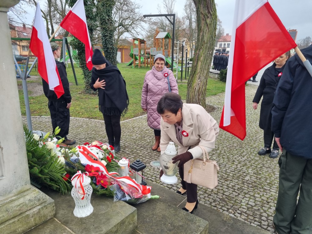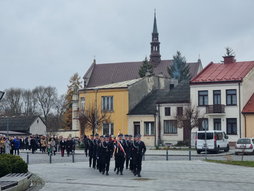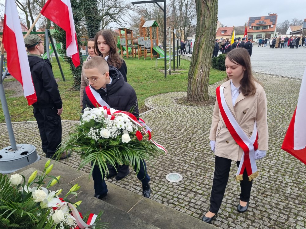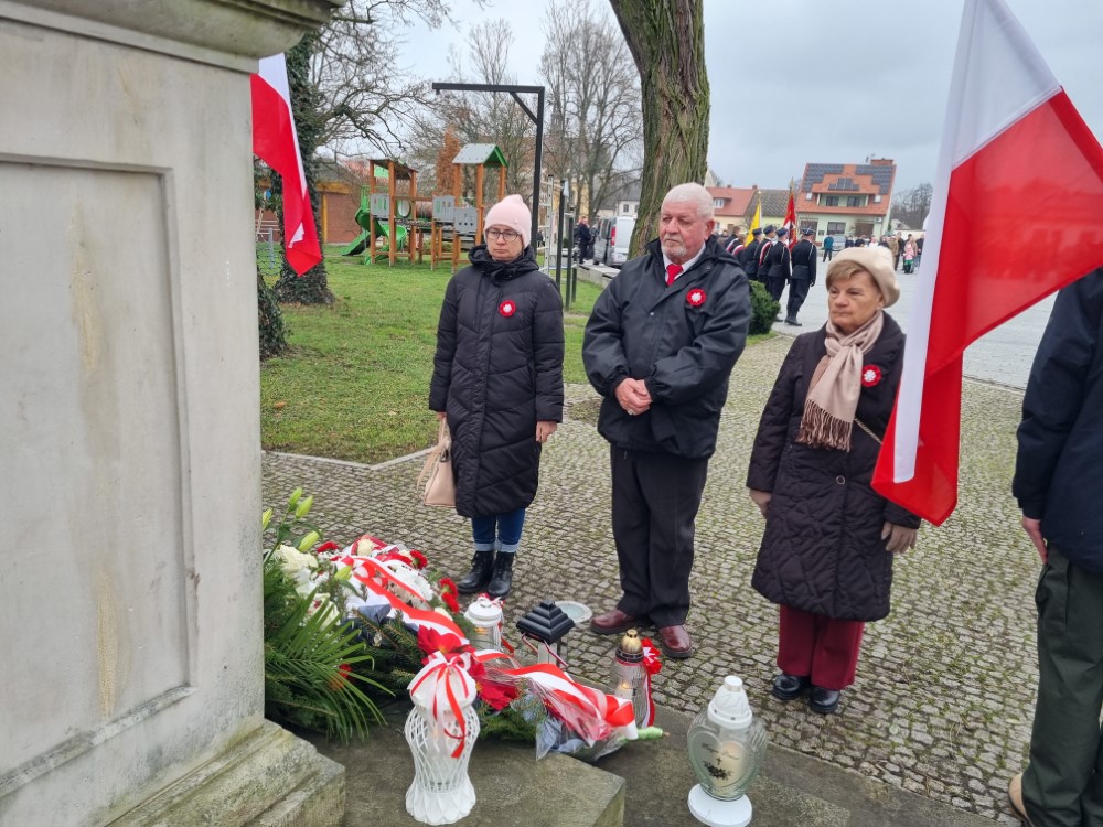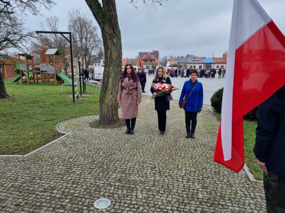 Na rynku odśpiewano Hymn Rzeczypospolitej Polskiej, a delegacje samorządu gminy, placówek oświatowych oraz organizacji społecznych złożyli wiązanki kwiatów i zapalili znicze przy pomniku poległym w obronie ojczyzny.