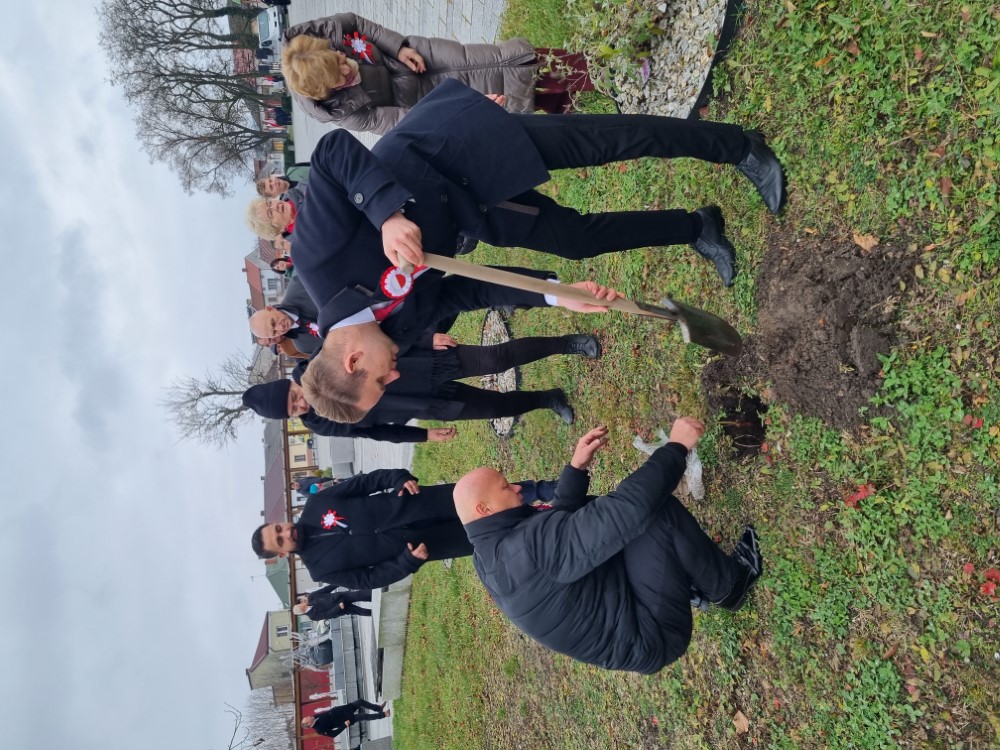 Posadzenie dwóch dębów na rakowskim rynku w ramach akcji „Tysiąc Dębów na Tysiąclecie Państwa Polskiego” było kulminacyjnym momentem uroczystości z okazji Odzyskania Niepodległości 11 listopada 2025 r.
